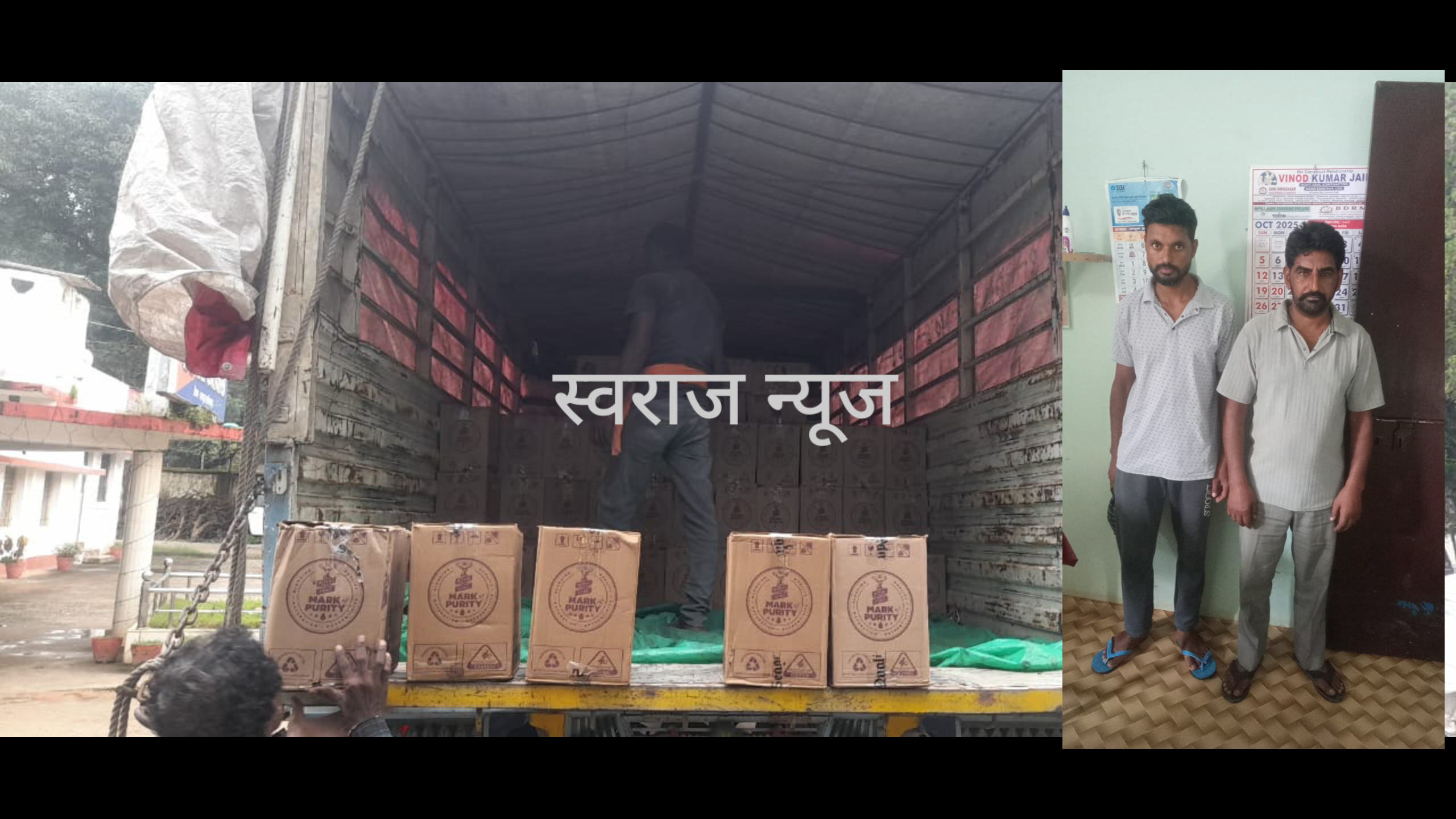 @स्वराज न्यूज। जशपुर पुलिस को मिली बड़ी सफलता दिनांक 07.10.25 को सिटी कोतवाली जशपुर पुलिस को मुखबीर से पुख्ता सूचना मिली थी कि एक संदेही ट्रक क्रमांक RJ -09-GE-0124 में भारी मात्रा में अवैध रूप से अंग्रेजी शराब लोड है, जिसे कि पंजाब, हरियाणा से जशपुर होते हुए रांची झारखंड की ओर ले जाया जा रहा है, जिस पर पुलिस के द्वारा सूचना के संबंध में वरिष्ठ पुलिस अधिकारियों को अवगत कराते हुए, वरिष्ठ पुलिस अधीक्षक जशपुर शशि मोहन सिंह के दिशा निर्देश पर उक्त संदेही ट्रक को ट्रेस करते हुए, सिटी कोतवाली जशपुर क्षेत्रांतर्गत ग्राम आगडीह के पास नेशनल हाइवे 43 पर नाका बंदी की गई थी, व संदेही वाहनों की चेकिंग की जा रही थी। इसी दौरान उक्त संदेही ट्रक क्रमांक RJ -09-GE-0124 आता दिखाई देने पर, पुलिस के द्वारा उक्त संदेही ट्रक क्रमांक RJ -09-GE-0124 को घेरा बंदी कर रोका गया, पुलिस के द्वारा जब संदेही ट्रक की तलाशी ली गई तब , उसके ट्रॉली में भूसी की बोरियो से छुपाकर रखा गया 426 कार्टून में अंग्रेजी शराब मिला, जिसे पुलिस के द्वारा ट्रक सहित जप्त करते हुए, ट्रक में बैठे चालक सहित दो व्यक्तियों क्रमशः रणवीर सिंह उम्र 42 वर्ष व जगदीप सिंह, उम्र 30 वर्ष को हिरासत में लिया गया।
